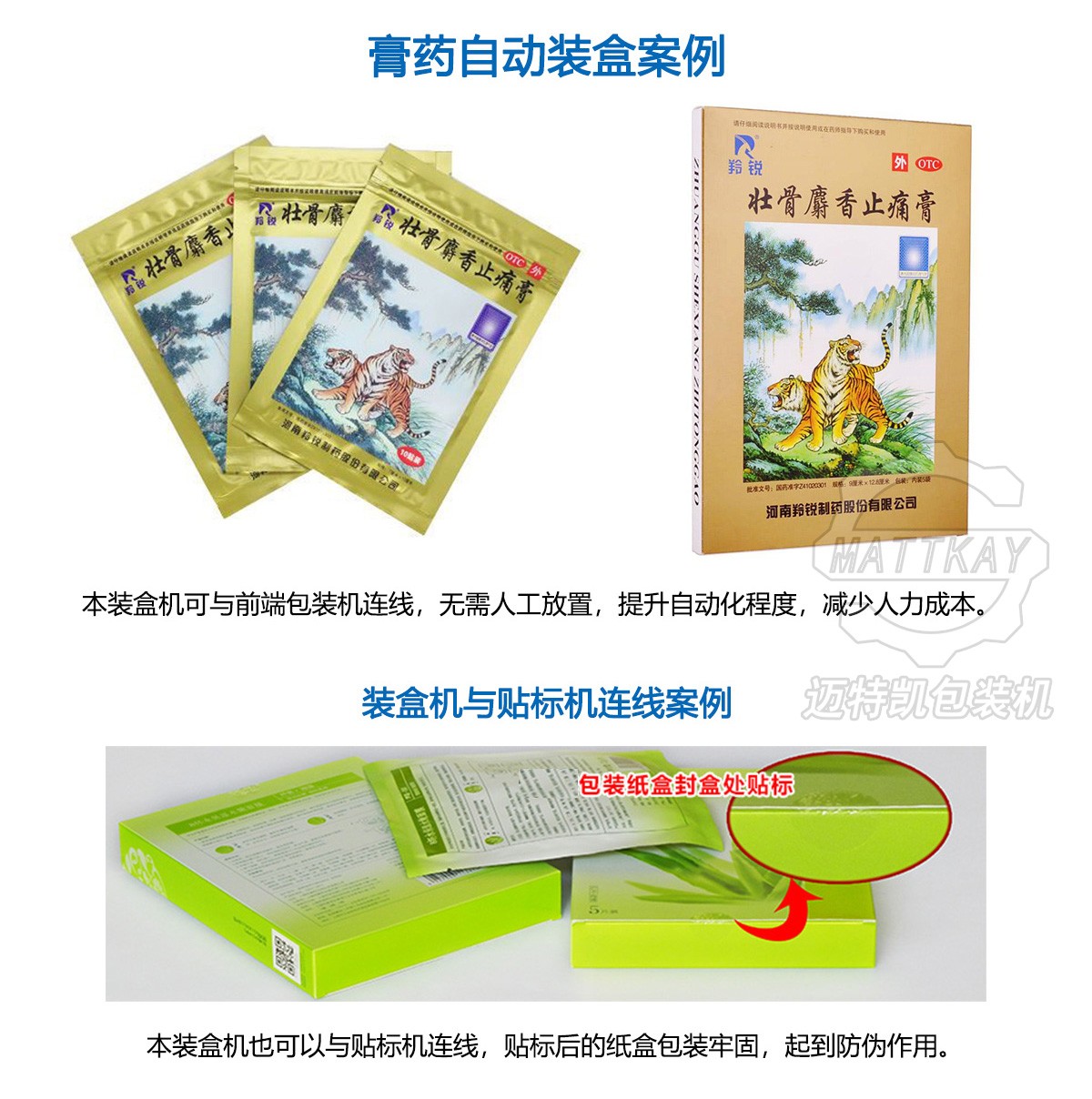 邁特凱膏藥裝盒機是一款專門為膏藥貼、退熱貼、面膜等片狀產(chǎn)品設(shè)計定制的自動化紙盒包裝機,本機具備自動數(shù)片、自動開盒、裝盒、封盒等功能,用戶可根據(jù)需求加配袋裝機、貼標(biāo)機、噴碼機等。膏藥裝盒機包裝速度在10-100盒/分鐘內(nèi)可根據(jù)產(chǎn)品需求設(shè)置穩(wěn)定包裝速度,外觀采用優(yōu)質(zhì)鋼材及不銹鋼制造,可調(diào)節(jié)的紙盒槽機構(gòu),適應(yīng)包裝紙盒大小,手動即可調(diào)節(jié),方便快捷。折盒進料機構(gòu),設(shè)有無產(chǎn)品物料下紙盒,確保紙盒不會出現(xiàn)空物料包裝。